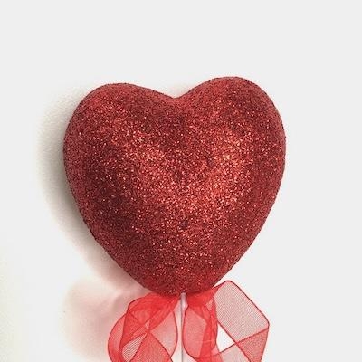 Red Glitter Love Heart Pick x 6