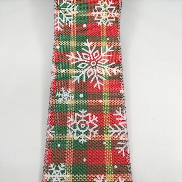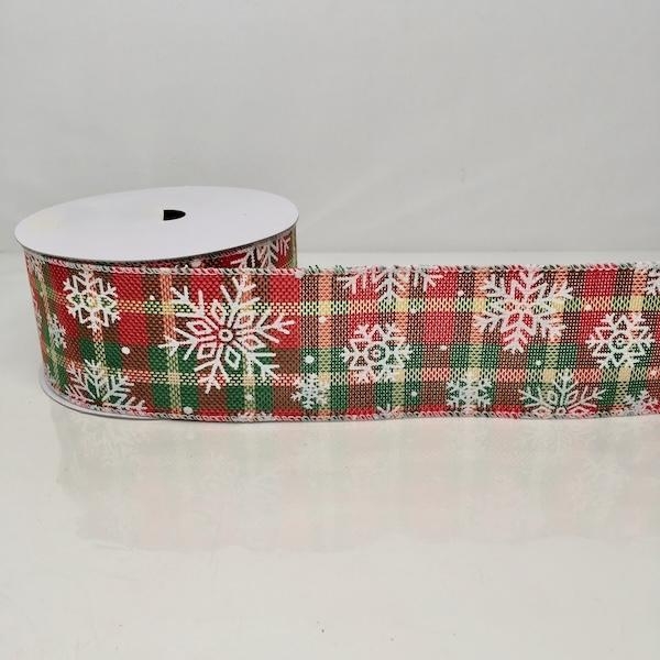63mm wire edged Christmas ribbon with a tartan background and snowflake design. The ribbon is wire edged for a better finish and is perfect for Christmas gifts, hampers and craft work. This product comes supplied on a 10 yard roll.