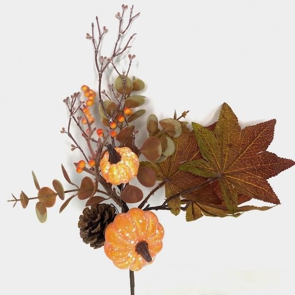 Orange Pumpkin & Eucayptus Pick 37cm