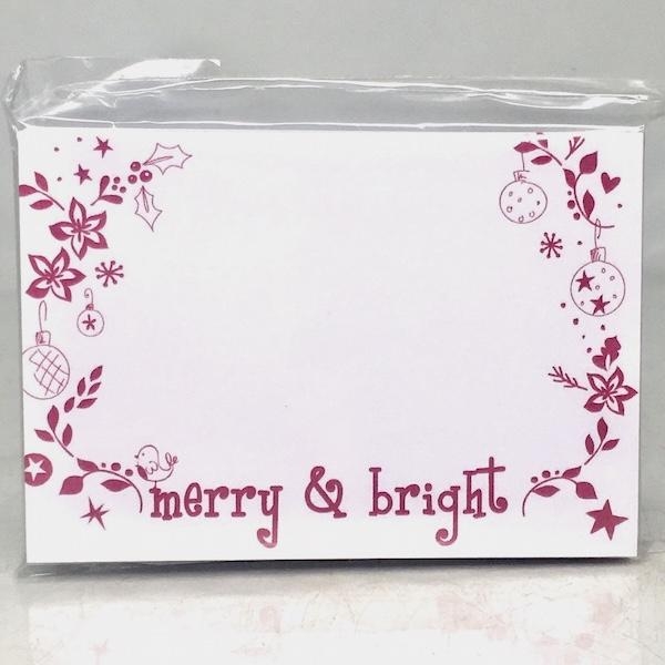 Small florist cards with a fesive border and the message 'merry & bright'. A widely used small florist card for adding a message to flower bouquets.