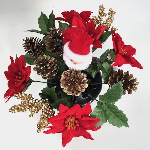 Red Velvet Poinsettia Grave Pot Santa 26cm