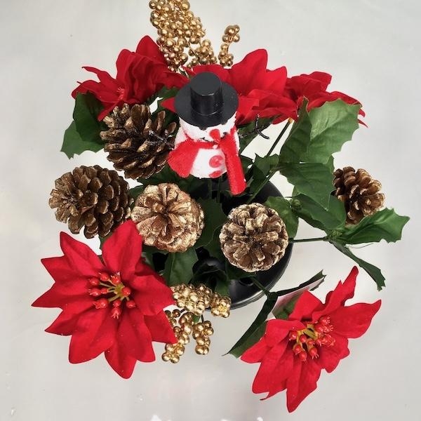 Red Velvet Poinsettia Grave Pot Snowman 26cm