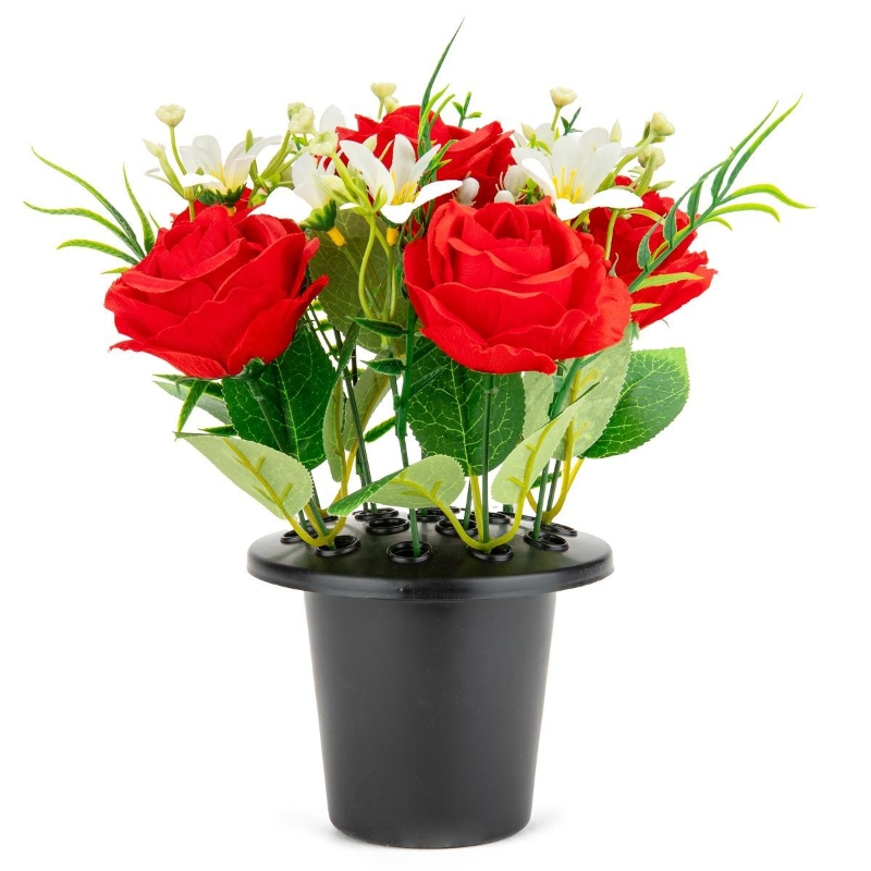 Red Rose & Foliage Grave Pot 25cm