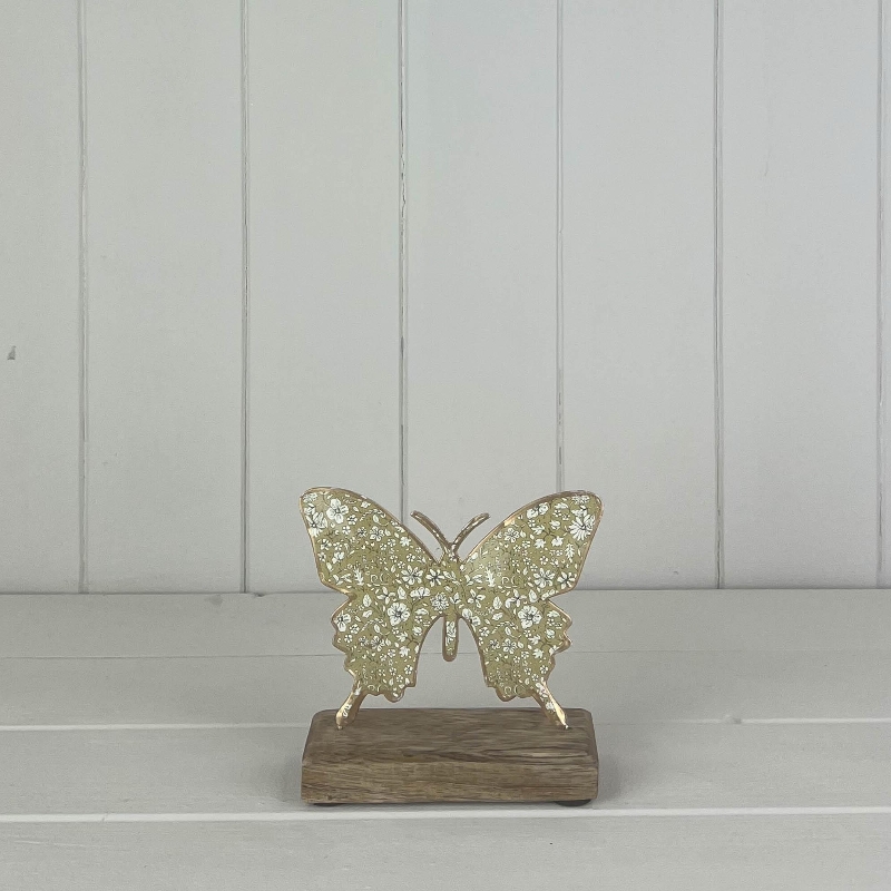 Green Butterfly On Wood Base 12cm