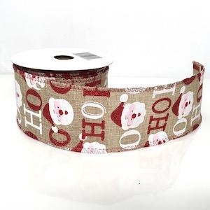 Santa HO HO HO Pattern Christmas Ribbon 63mm x 10 yards