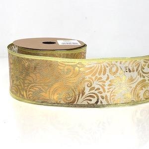 Gold Pattern Metallic Christmas Ribbon 63mm x 10 yards