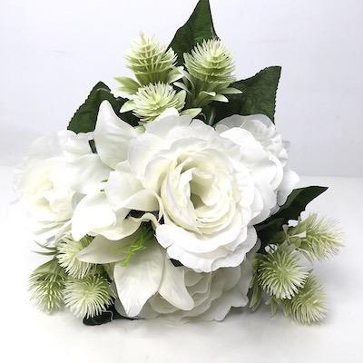 Ivory Rose And Thistle Bush 32cm